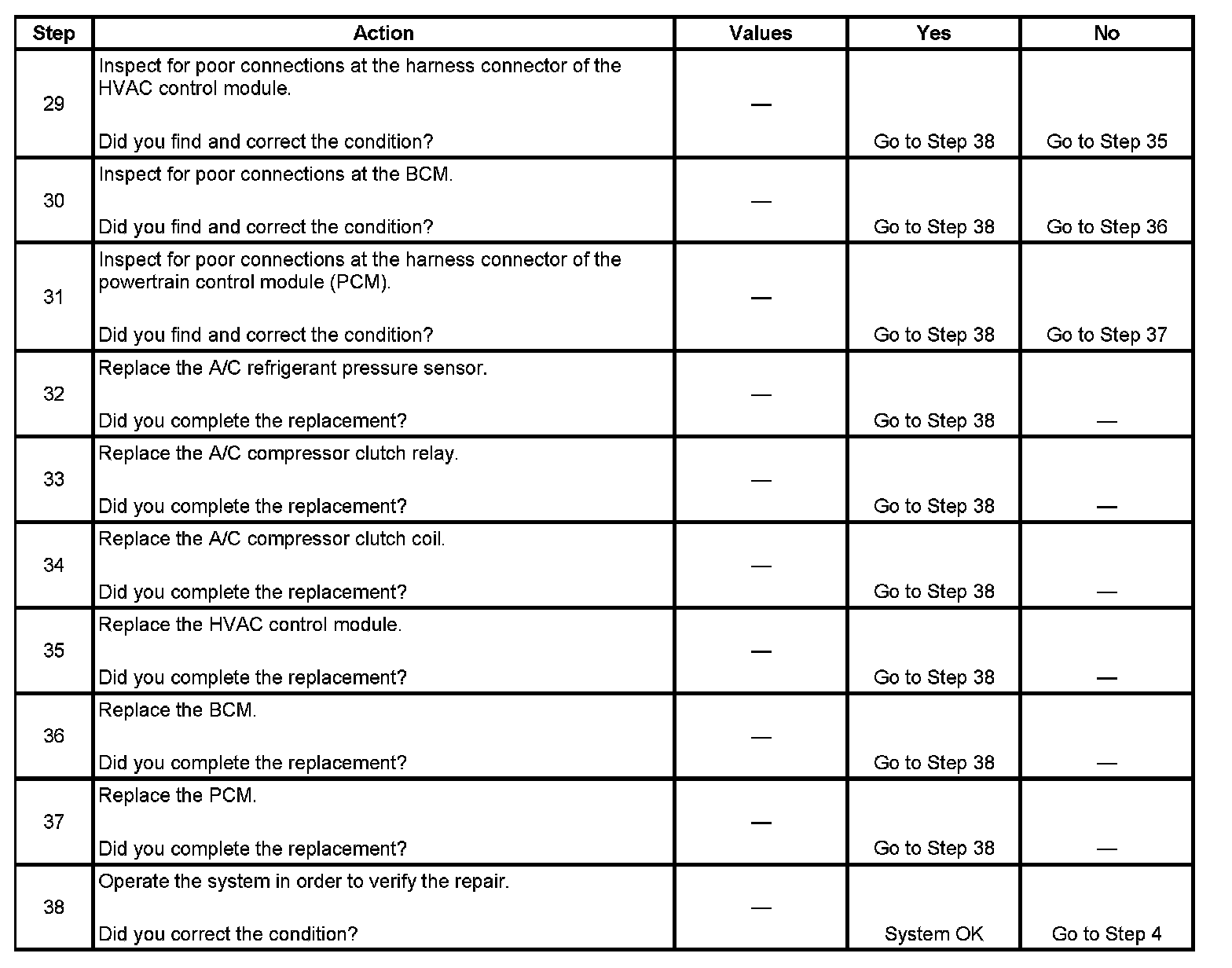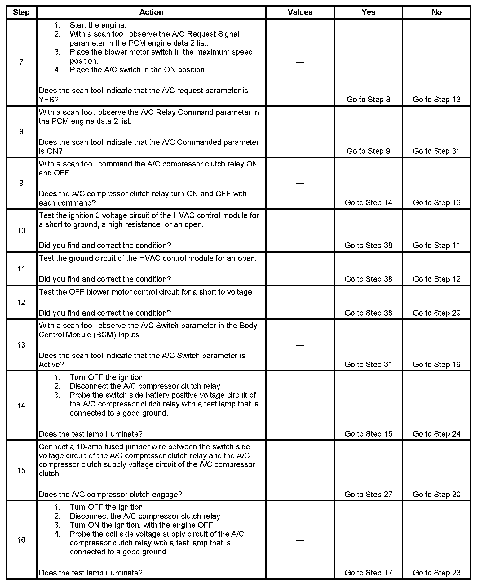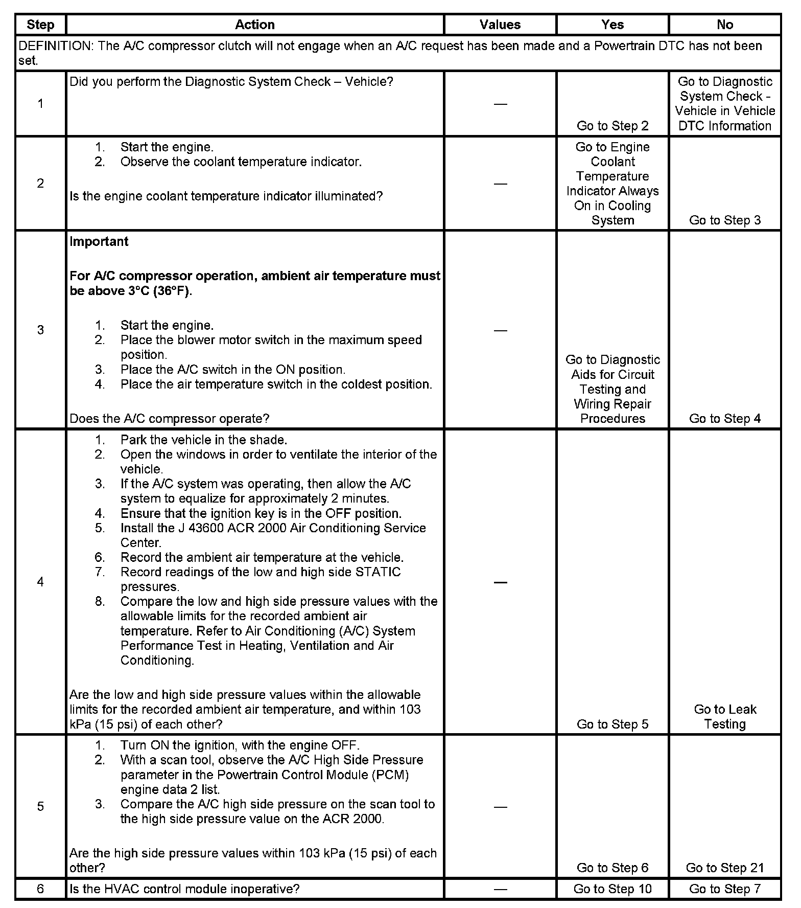 6. The HVAC control module is inoperative when the HVAC control unit does not respond to any operator control request to enable the A/C compressor. The blower motor may still operate independent of the A/C controls.