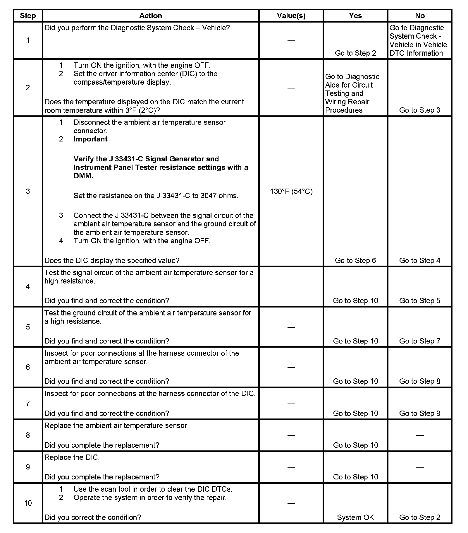 10. DTCs may be set in the driver information center (DIC) when you perform this diagnostic table.