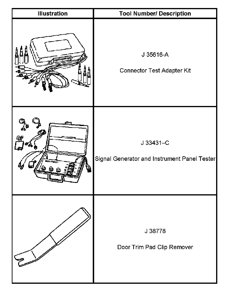 Instrument Panel, Gauges and Warning Indicators: Tools and Equipment