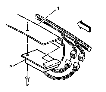 1. Position the emergency vehicle rear flasher (2) to the rear window panel extension brace (1).