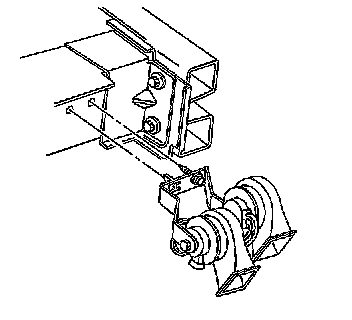 1. Position the horn to the frame rail extension; insert the horn anti-rotation tab into the slot on the frame rail.