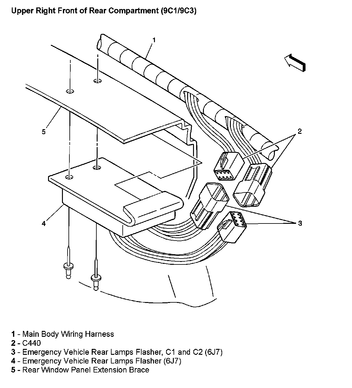Upper Right Front Of Rear Compartment (With RPO Code 9C1/9C3):