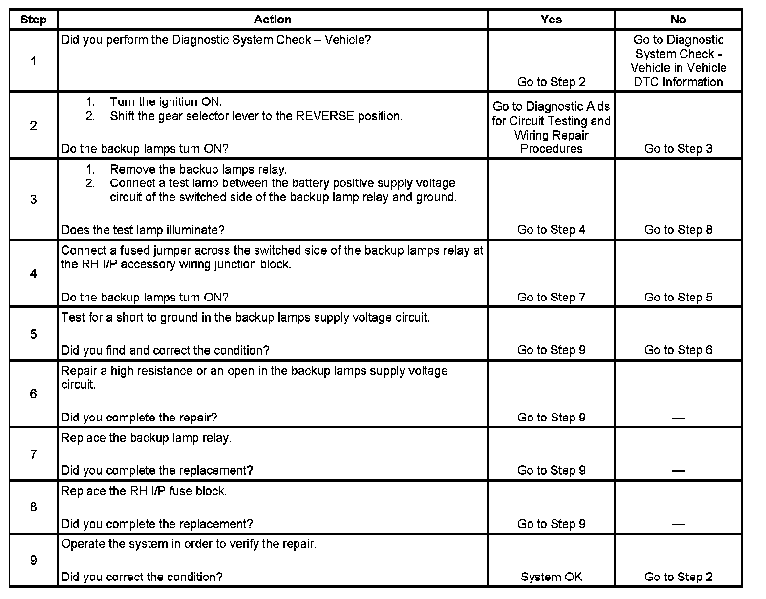 Backup Lamps Inoperative