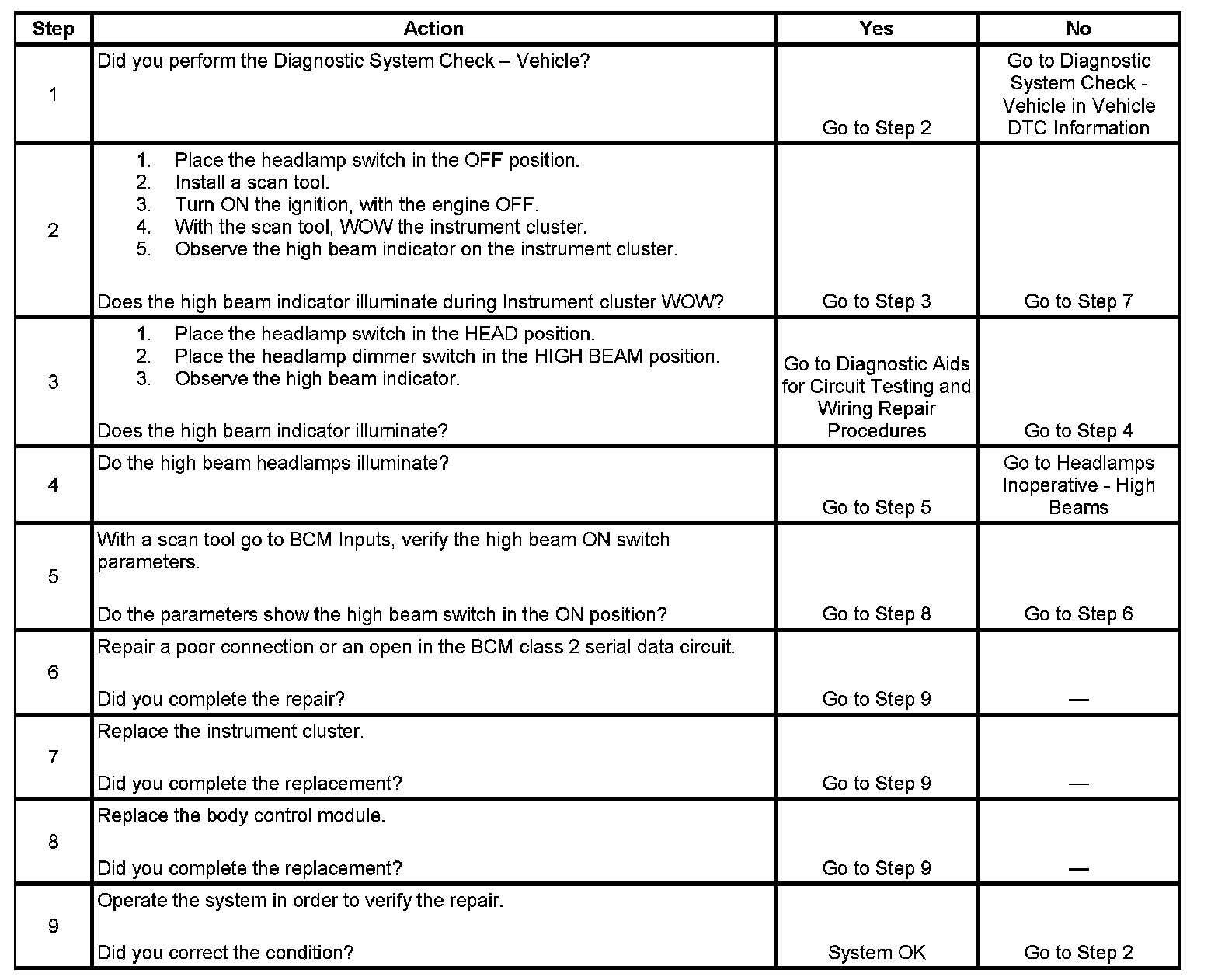 High Beam Indicator Inoperative