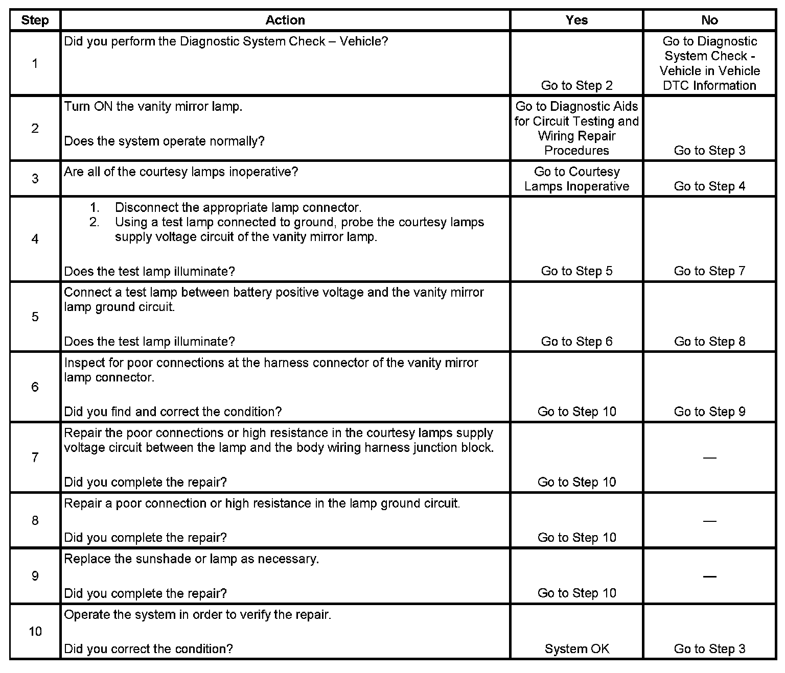 Vanity Mirror Lamps Inoperative