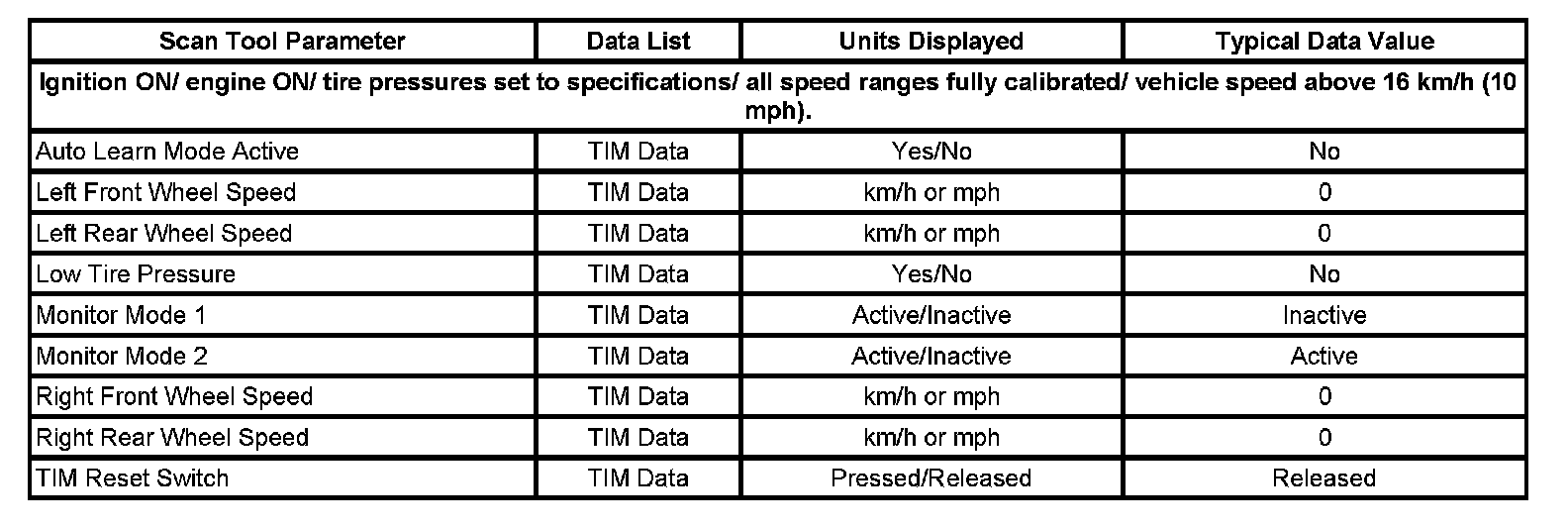 Scan Tool Data List
