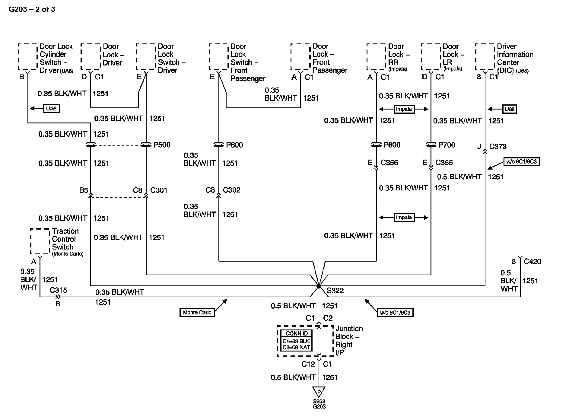 The locations for the Connectors, Grounds, Splices, and Grommets shown within these diagrams can be found via their numbers at Vehicle Locations. Locations