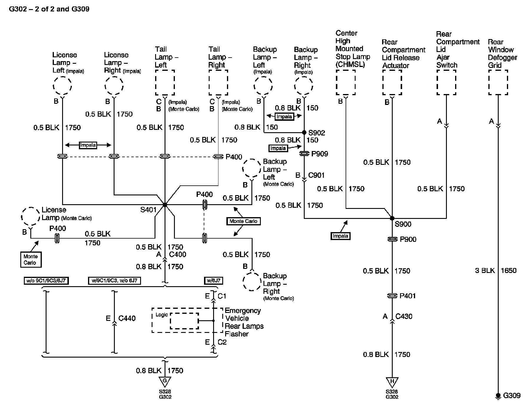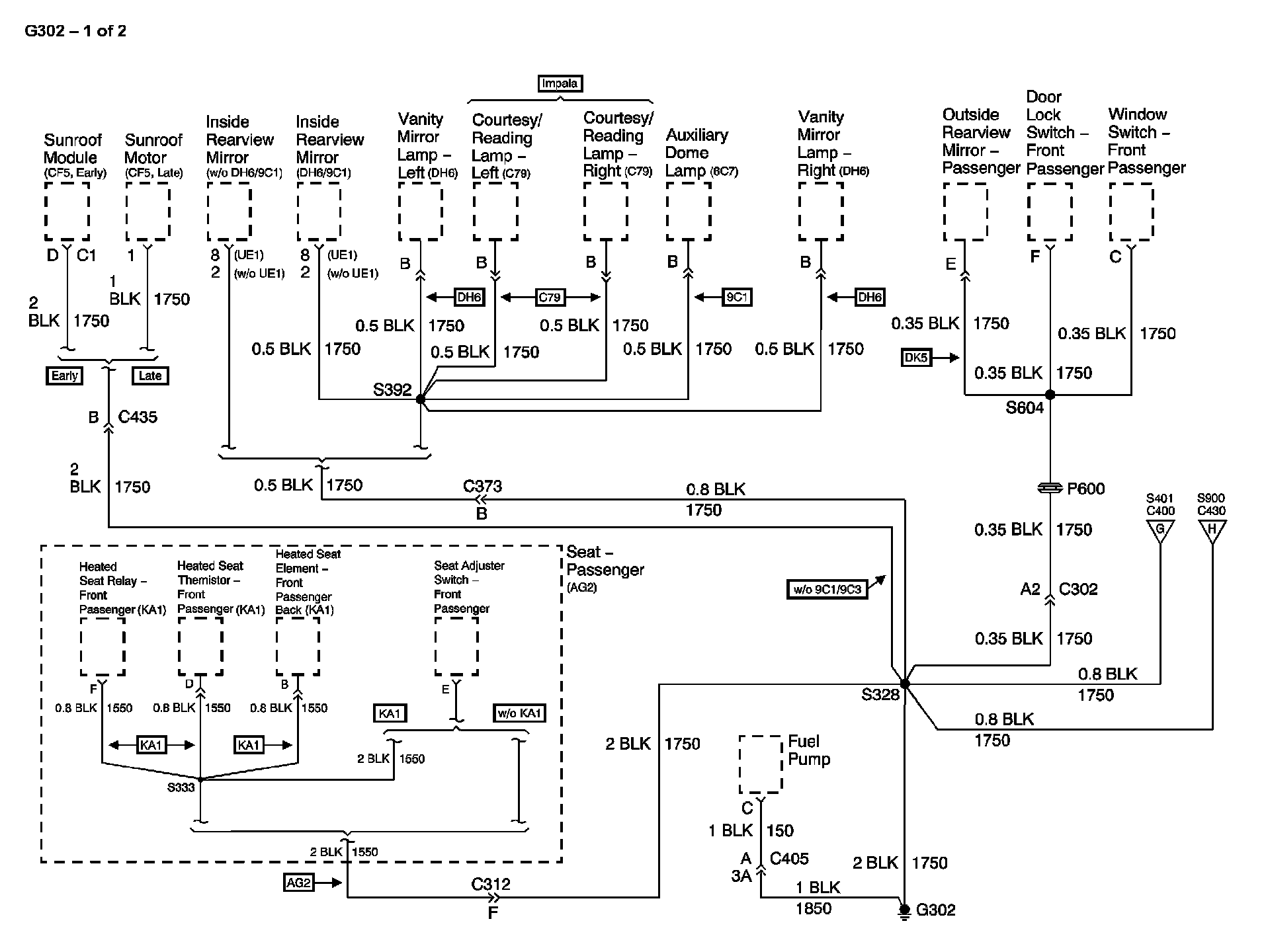 The locations for the Connectors, Grounds, Splices, and Grommets shown within these diagrams can be found via their numbers at Vehicle Locations.