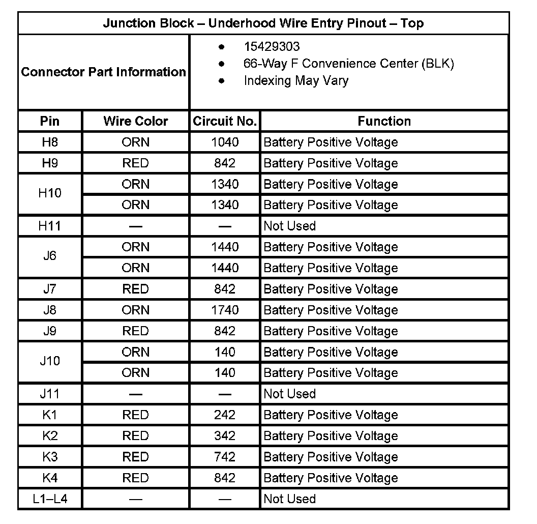 Junction Block - Underhood Wire Entry Pinout - Top