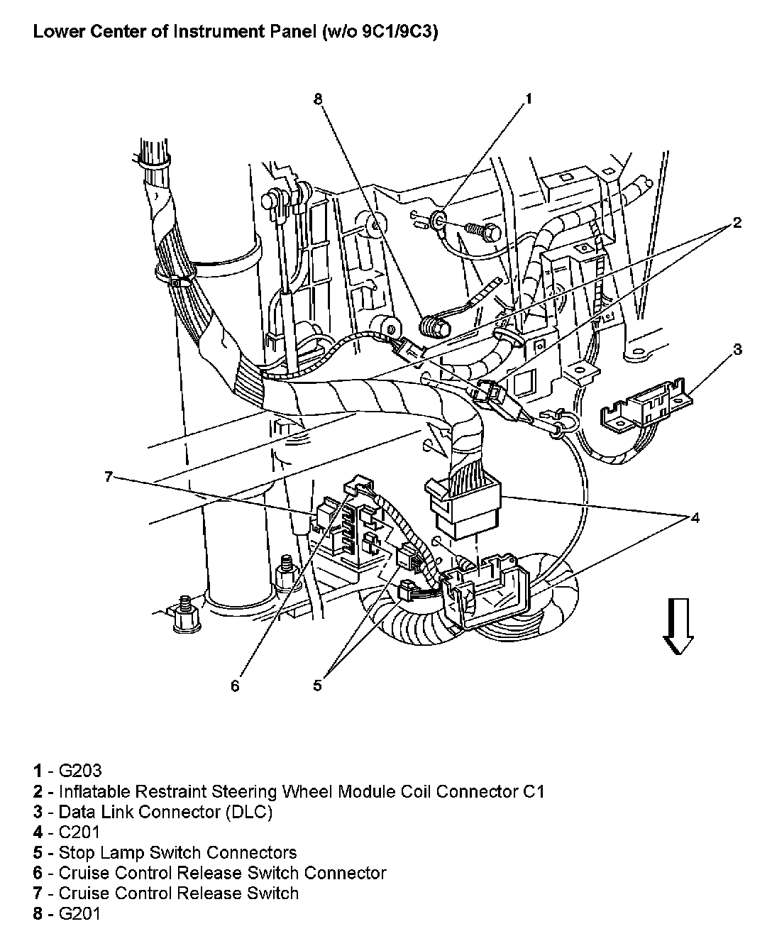 Lower Center Of Instrument Panel (Without RPO Code 9C1/9C3):
