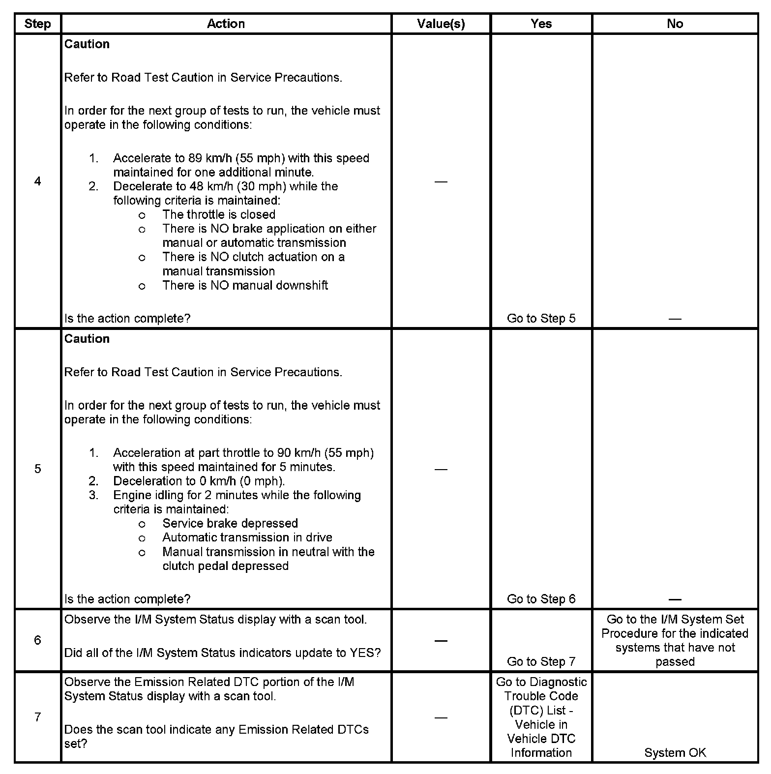 7. The I/M System Status only reports on whether or not a diagnostic has run, not what the outcome of the test was. If any emission related DTC sets after the tests are complete, the DTC will require diagnosis.