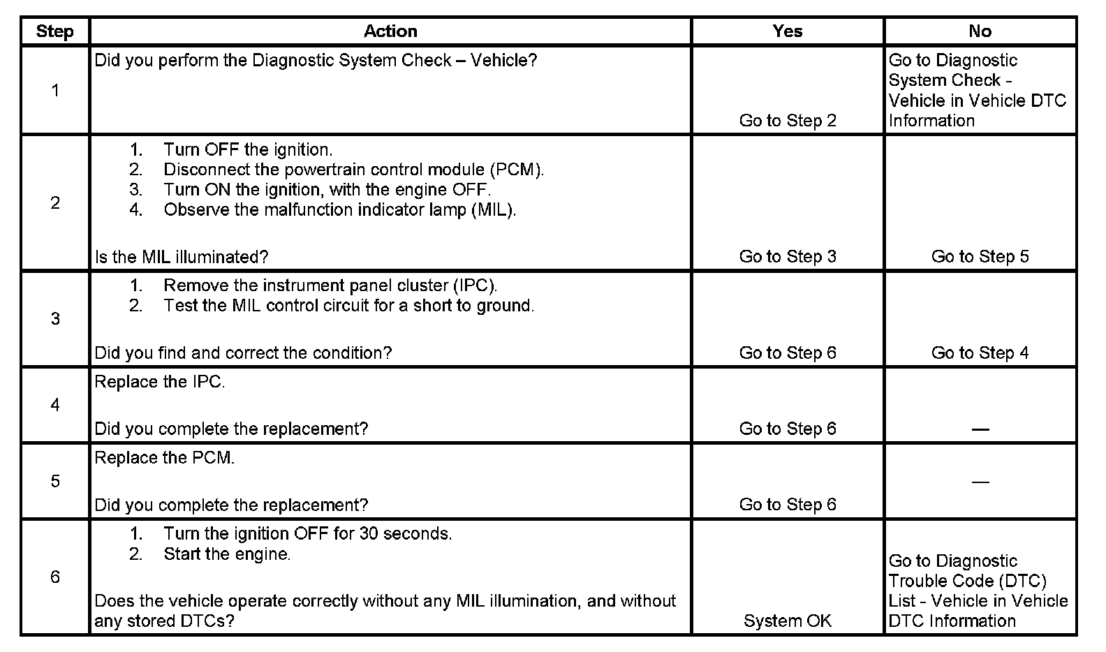 2. This step determines if the condition is with the MIL control circuit or the PCM.