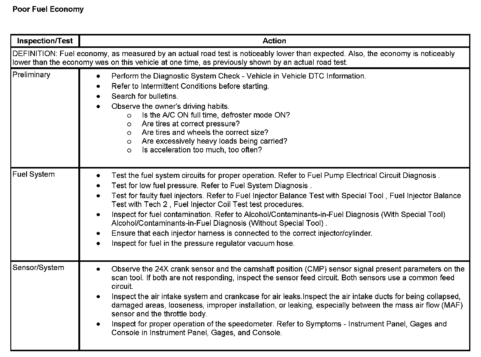Poor Fuel Economy