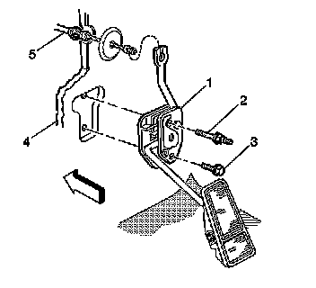2. Remove the accelerator cable (5) from the accelerator pedal (1).