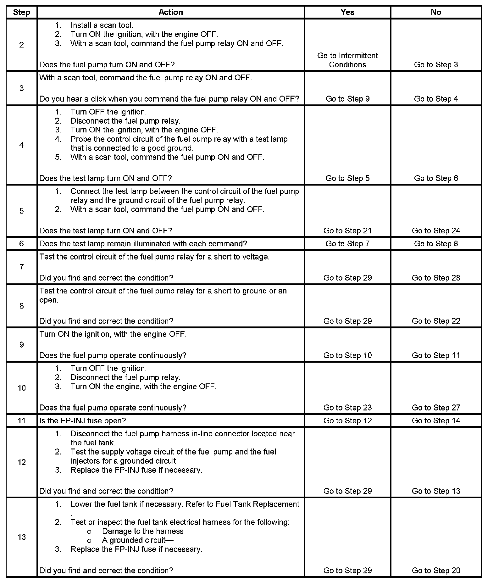20. This step determines if the condition with the circuit is intermittent. If the fuse does not open, inspect the supply voltage circuit between the fuse and the fuel pump for an intermittent condition.