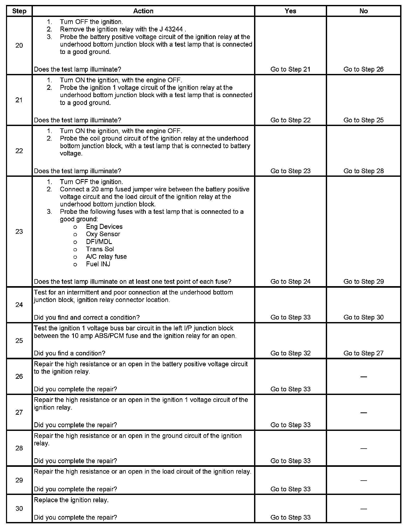 IGNITION RELAY DIAGNOSIS