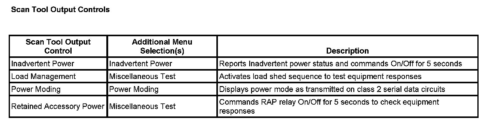 Scan Tool Output Controls: