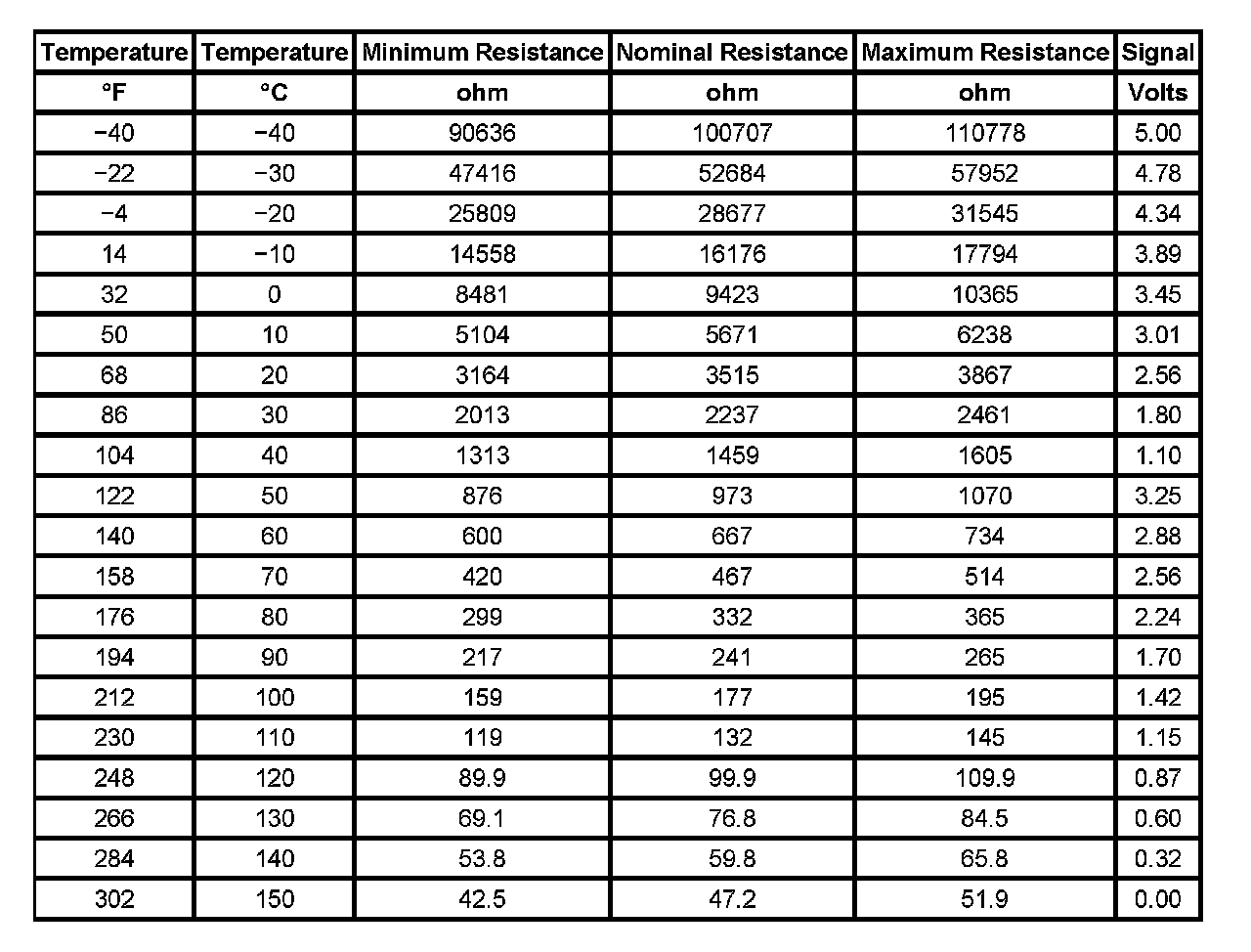 Transmission Fluid Temperature (TFT) Sensor Specifications: