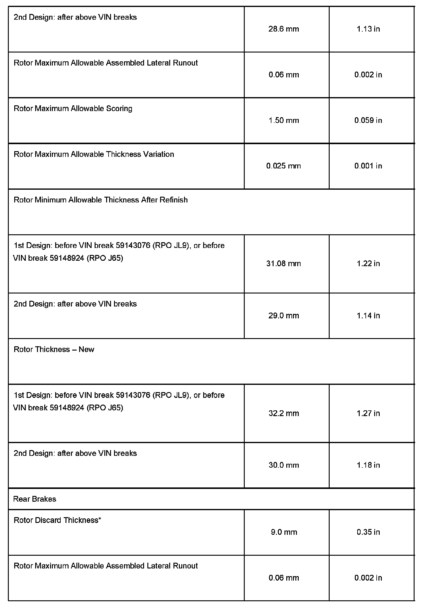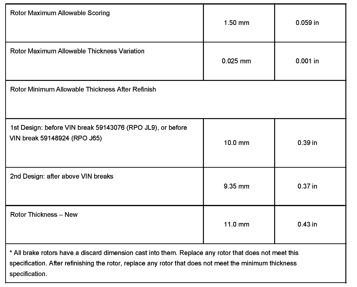 A running change was made in the 2005 model year to the front brake rotors and pads. The rotor specifications are different between the first design and second design rotors. The brake rotors and pads cannot be interchanged between the first and second designs.