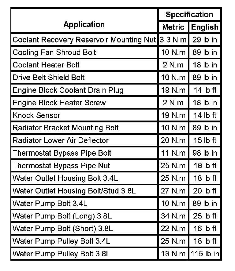 Fastener Tightening Specifications: