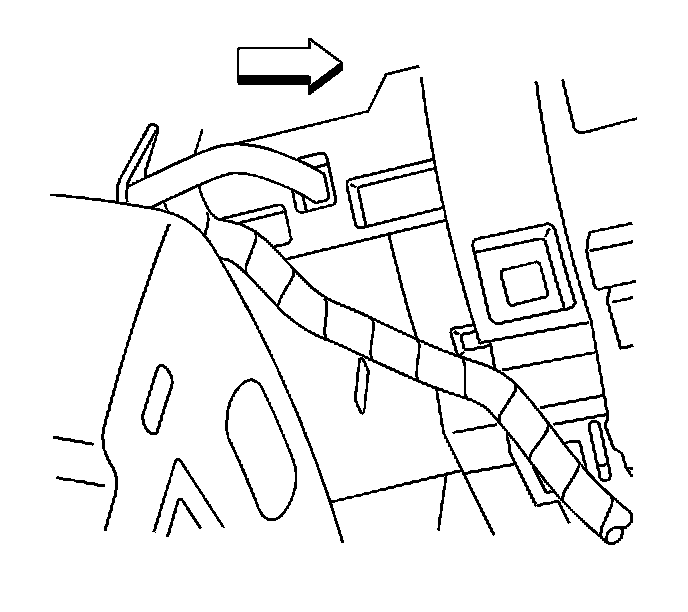 4. Using a small curved tool or an L-shaped hex wrench, depress and hold the detent on the ignition lock cylinder. Access the detent by placing the tool through the I/P opening to the right of the ignition switch. If you cannot locate the detent with the tool, lower the ignition switch away from the I/P. Refer to Ignition Switch Replacement.