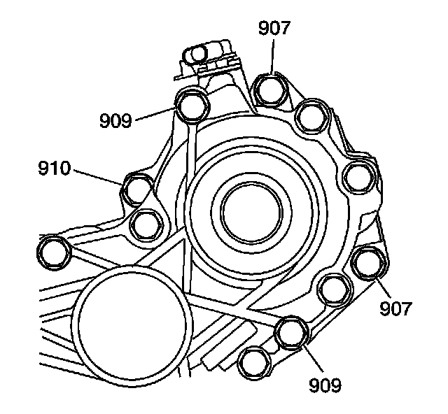 6. Remove the transfer case to case bolts (907, 909, 910).