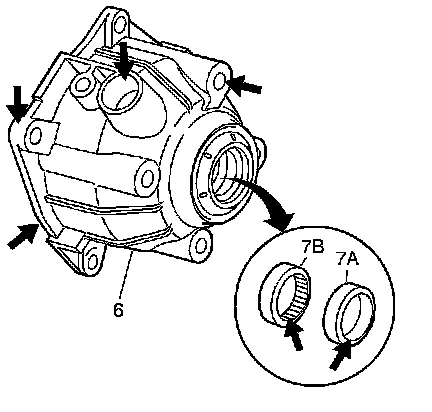 ^ A worn or damaged front differential carrier bushing (7A) or output shaft bearing assembly (7B)