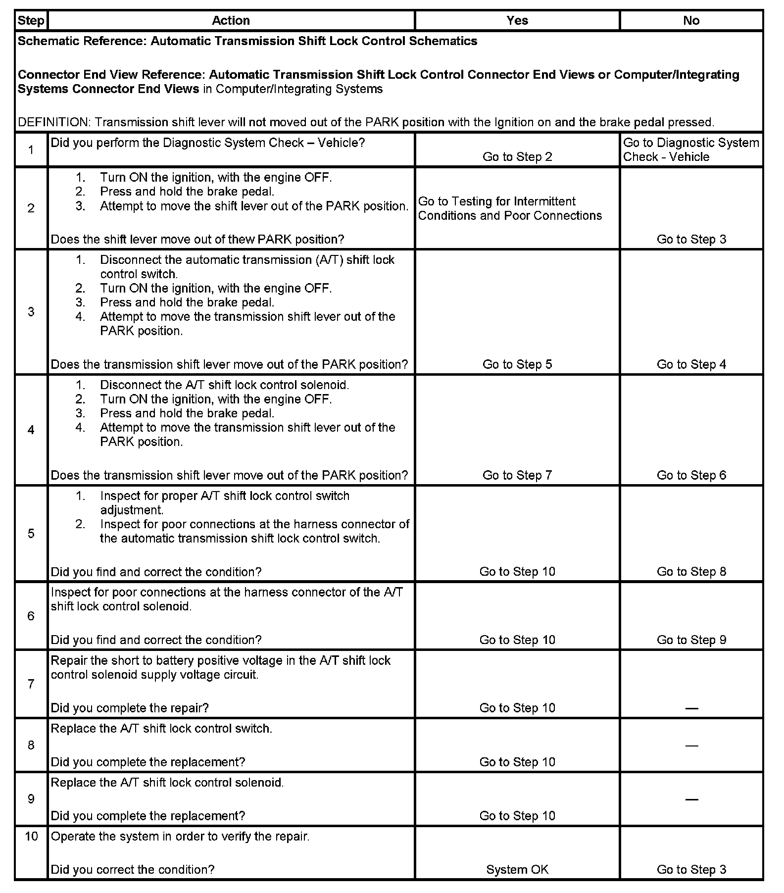 Shift Lever Does Not Move With Brake Pedal Depressed