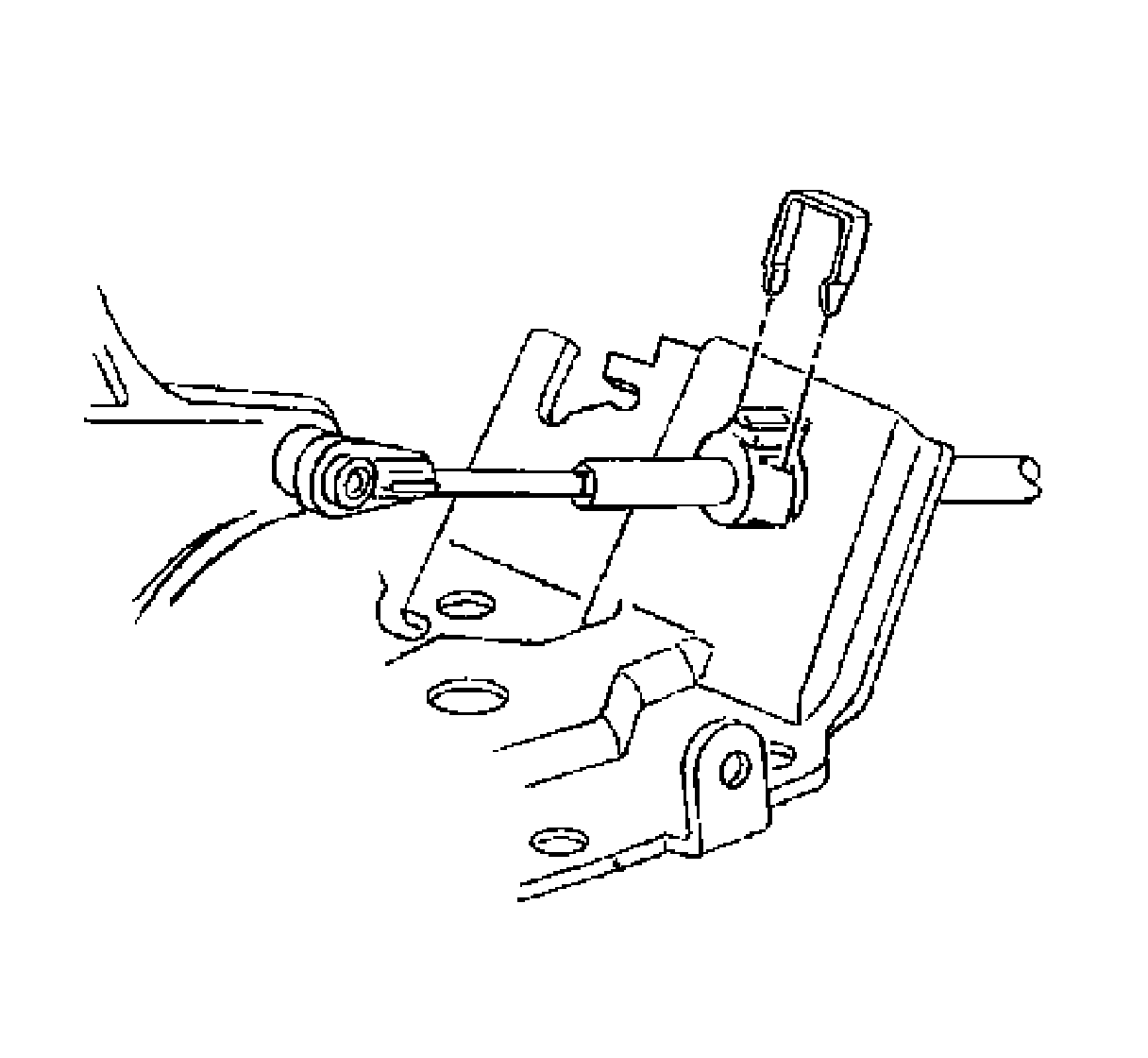 ^ Use the molded end fittings to push the metal end fitting of the shift control cable and the transaxle cable end together until the metal post snaps into place.