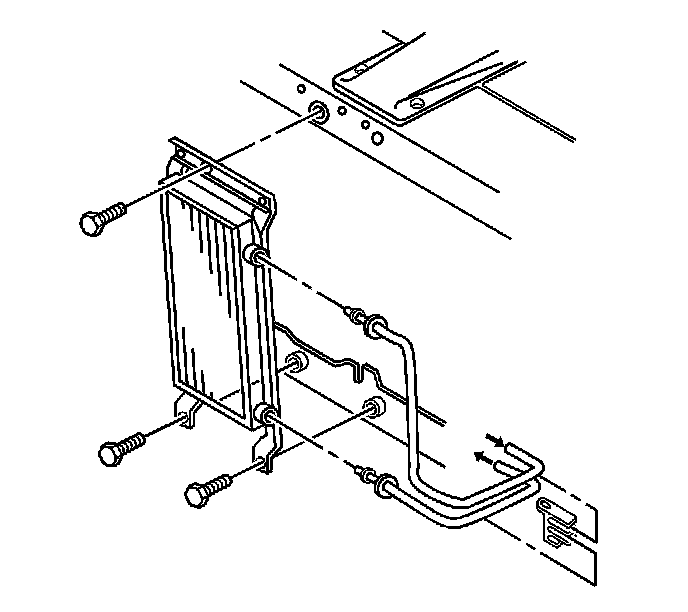 5. Remove the inlet and outlet auxiliary transmission oil cooler lines from the support clips.