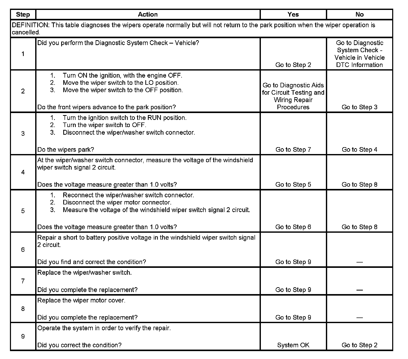 Wipers Blades Do Not Park