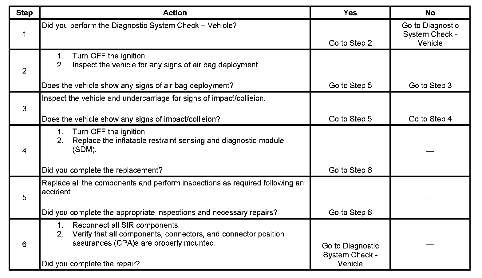 This DTC is set when the SDM has commanded an air bag deployment with no faults present.