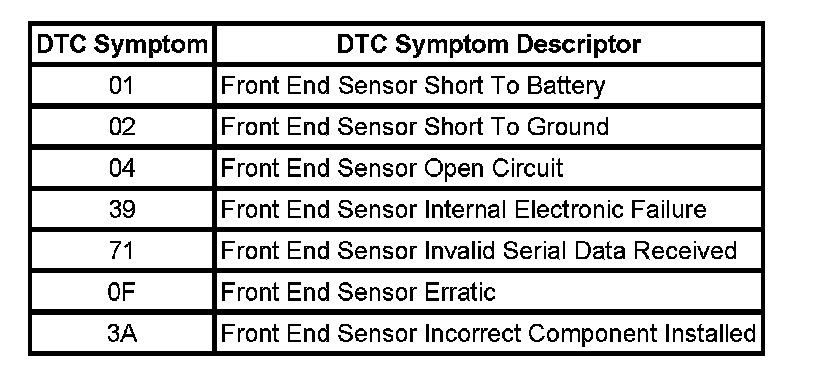 - DTC B0084 Front End Sensor 2 (Right)