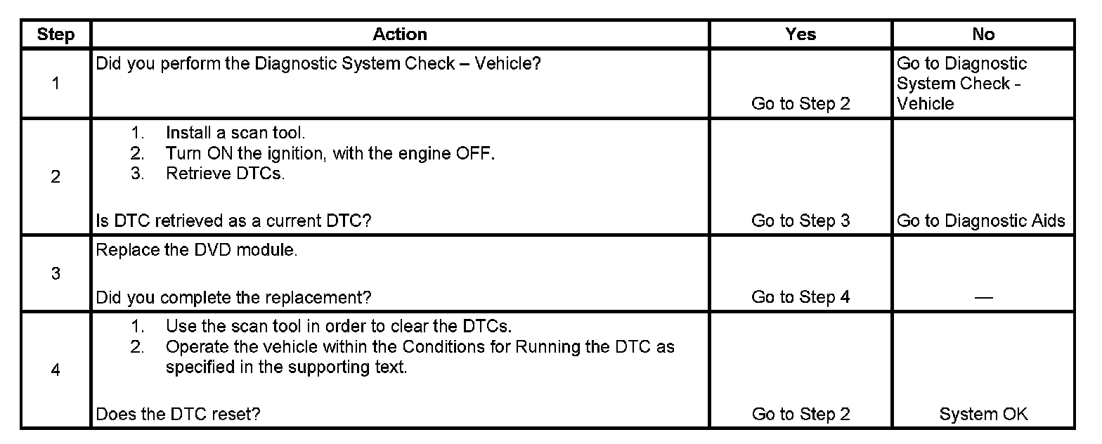 - If this DTC is retrieved as both a current and history DTC, replace the module.
