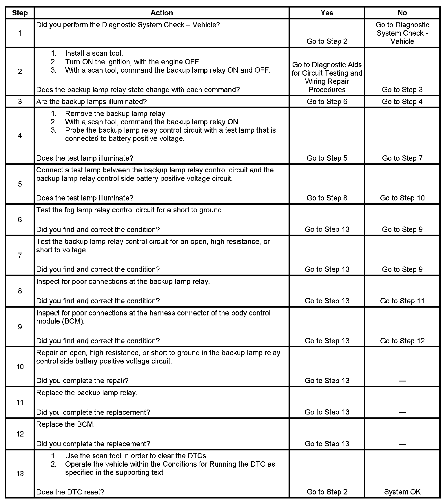 2. Listen for an audible click when the backup lamp relay operates. Command both the ON and OFF states. Repeat the commands as necessary.