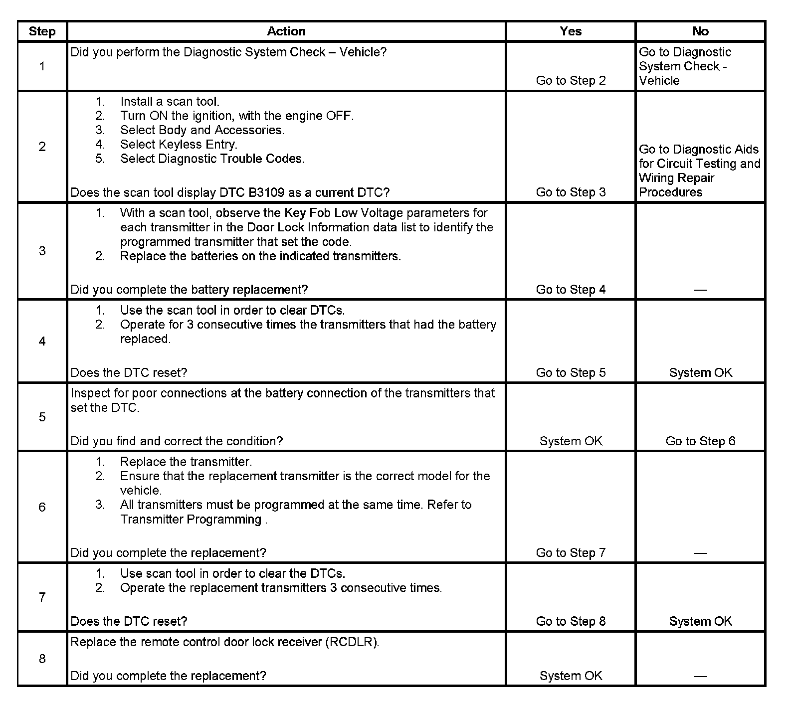 DTC B3109 RFA Key Fob Battery Low