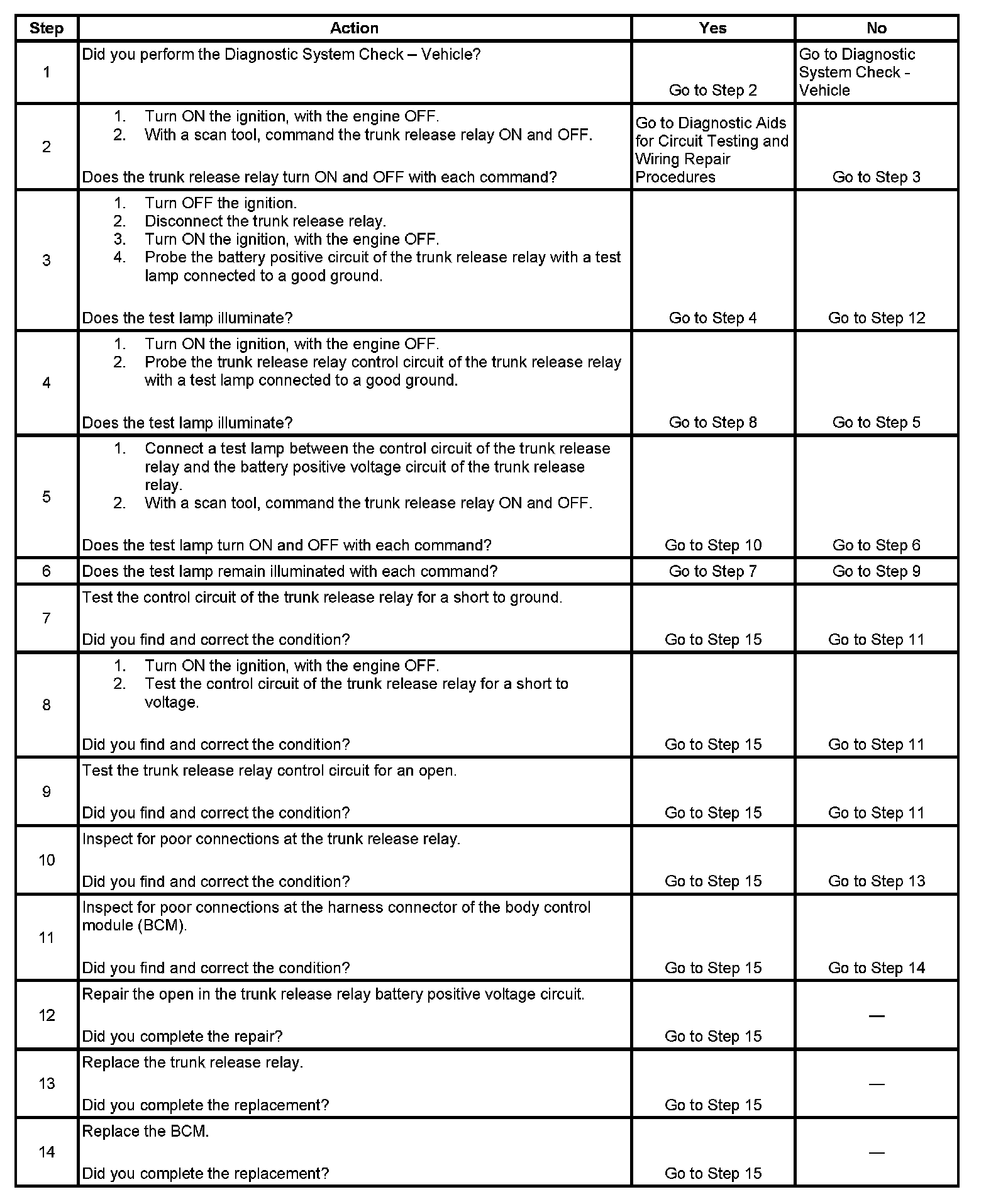 4. This step tests for a short to power in the signal circuit to the trunk release relay.
