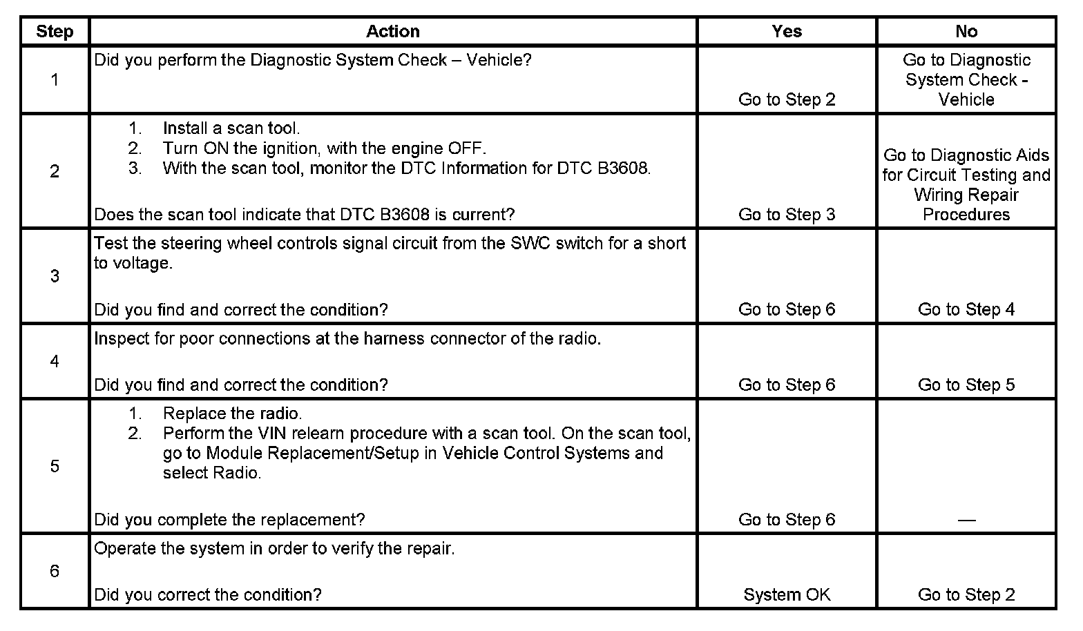 DTC B3608 Steering Wheel Control Entertainment Output Signal Circuit