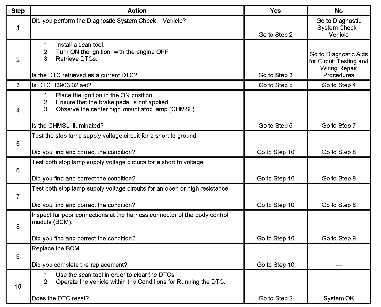 - DTC B3903.02 will set if the stop lamp switch signal circuit is shorted to ground for 125 ms.