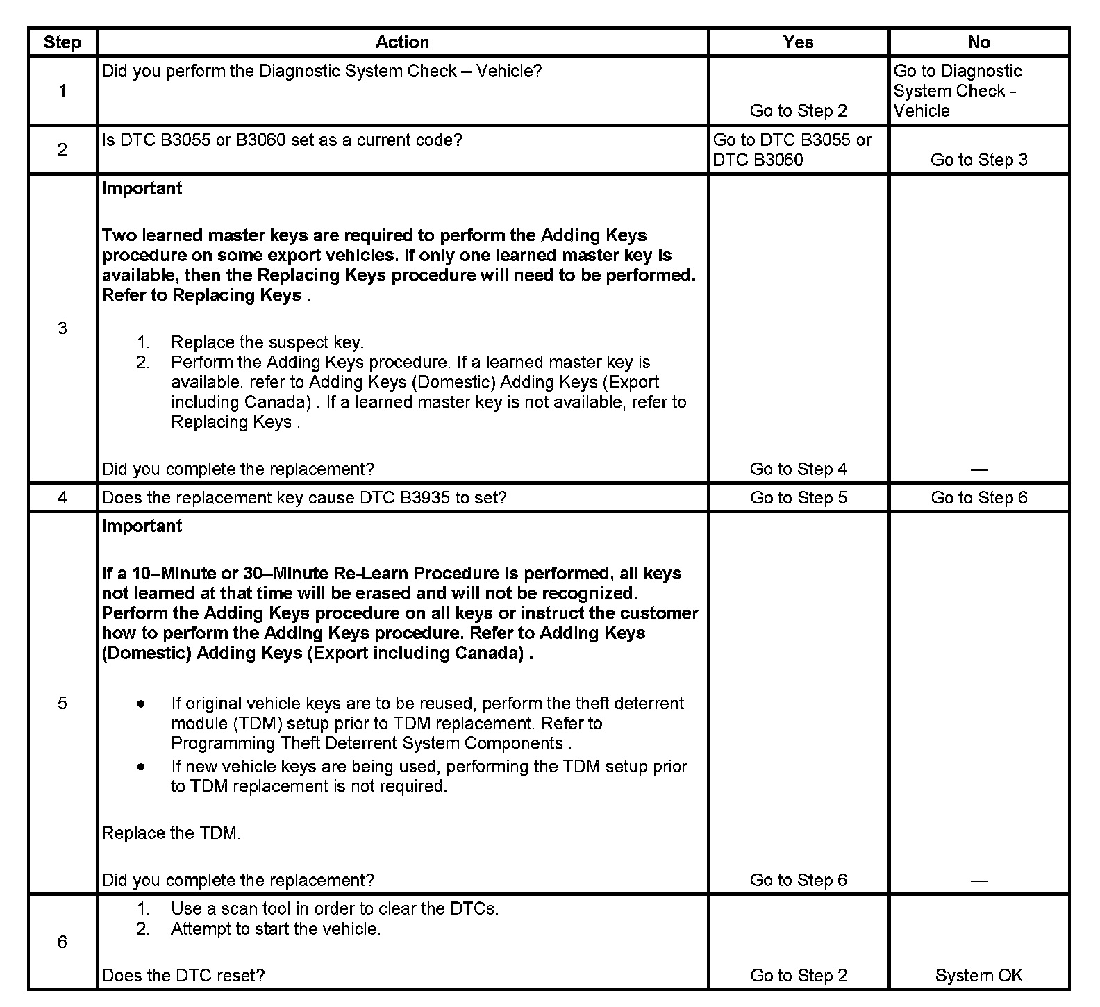 3. If a new key must be tried, the key must have the proper mechanical cut and the theft deterrent control module must learn the transponder value.