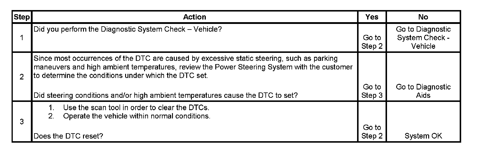 ^ A current DTC will clear when the Power Steering System temperature returns to normal.