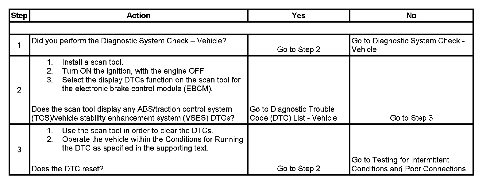 2. This step verifies whether other ABS/traction control system (TCS)/vehicle stability enhancement system (VSES) DTCs are set.