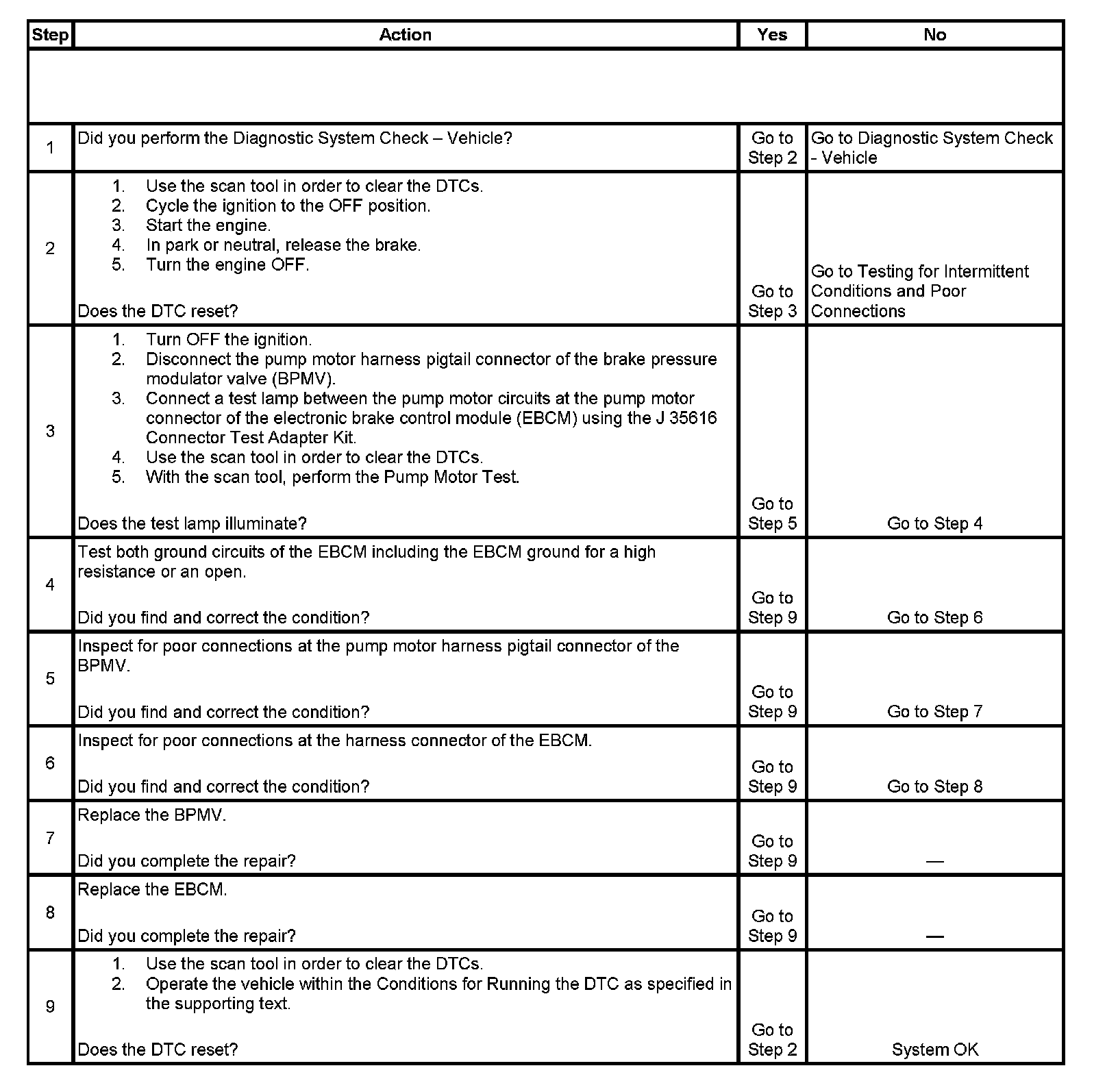 3. Tests the ability of the EBCM to control the pump motor. If the test lamp illuminates, the pump motor circuit within the EBCM is good.
