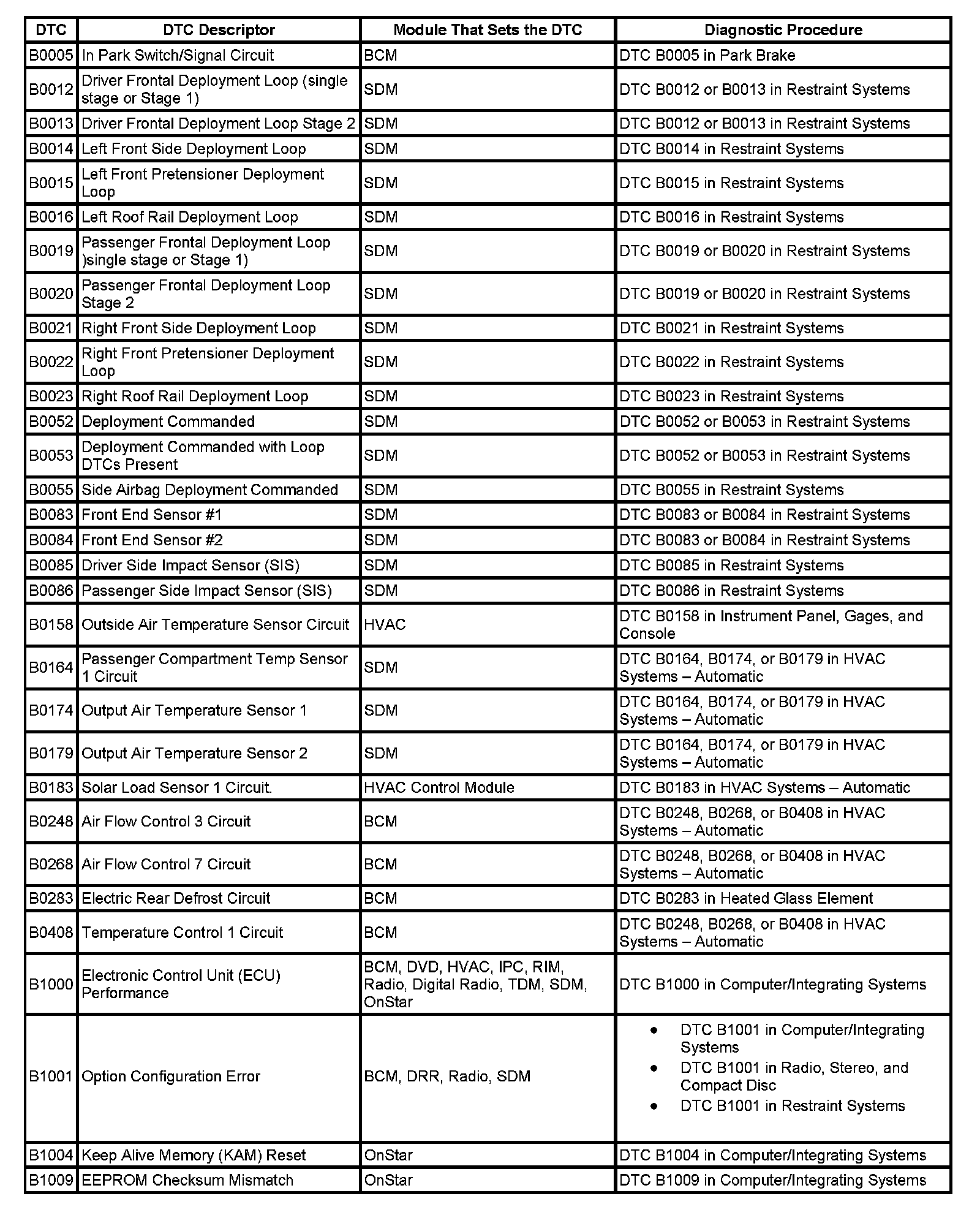 DTC's B0005-B1009: