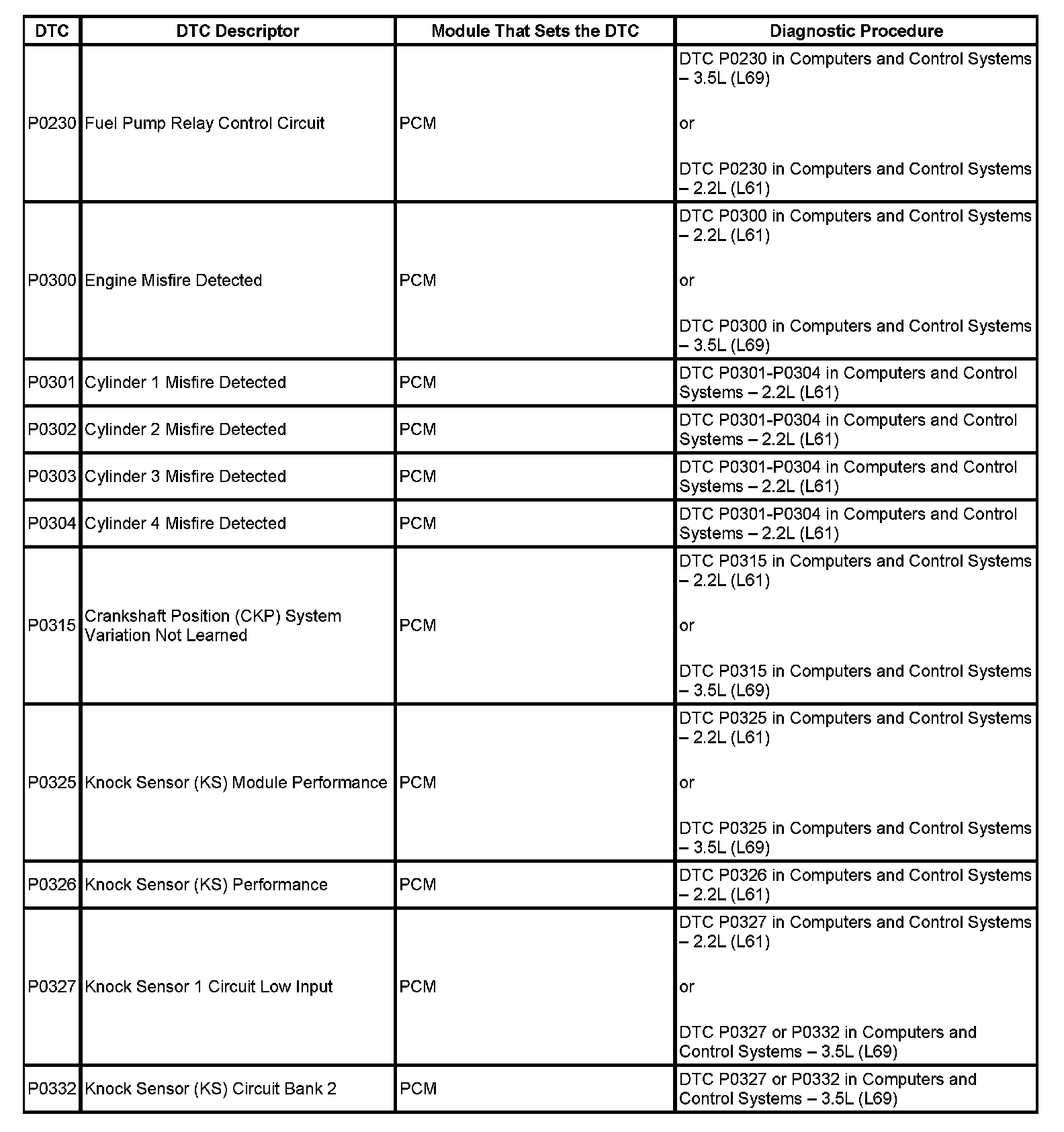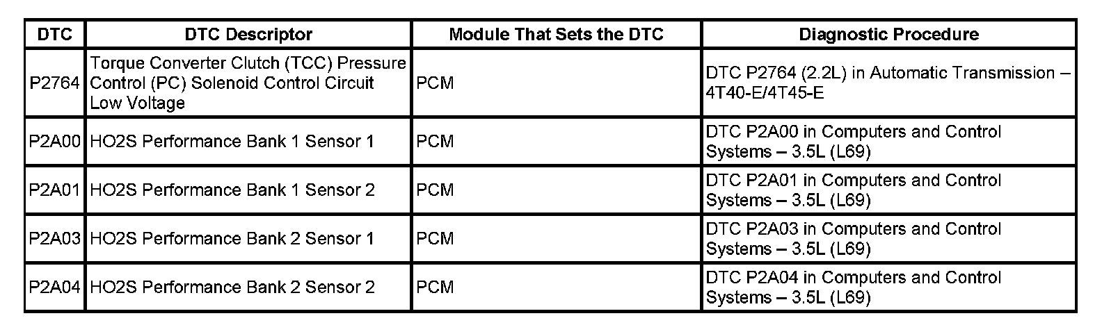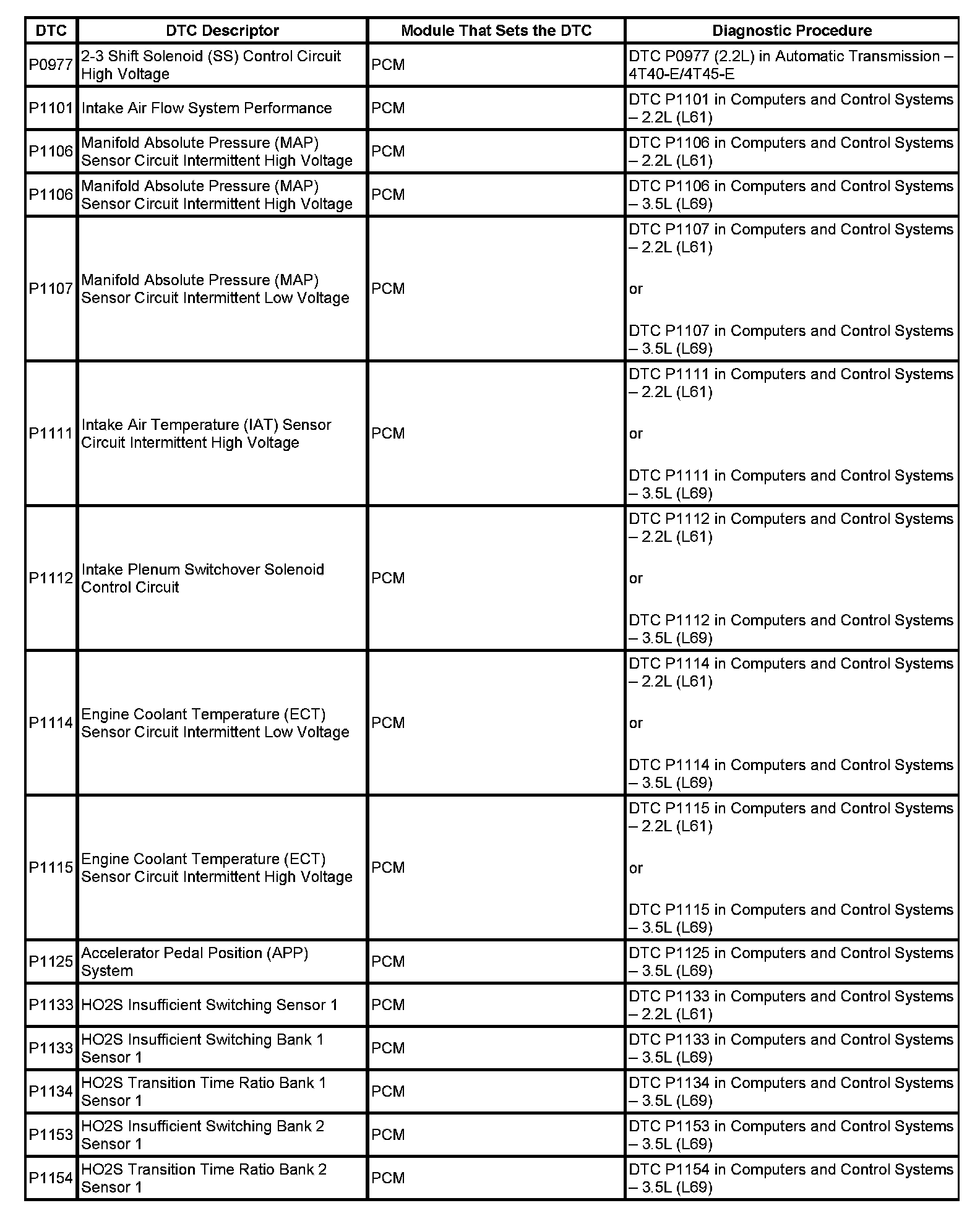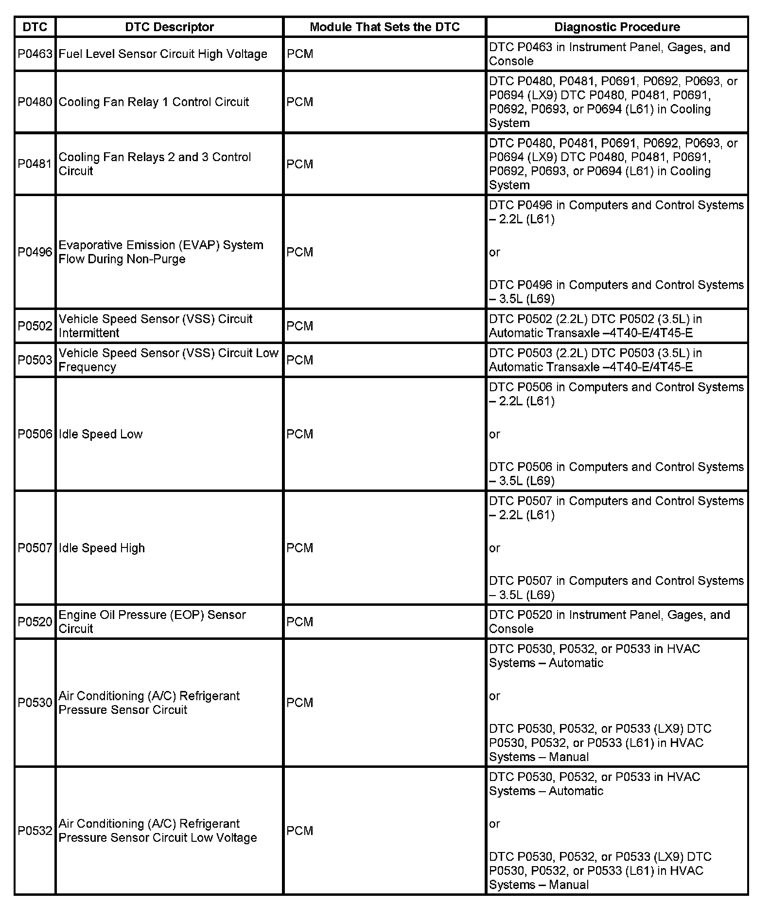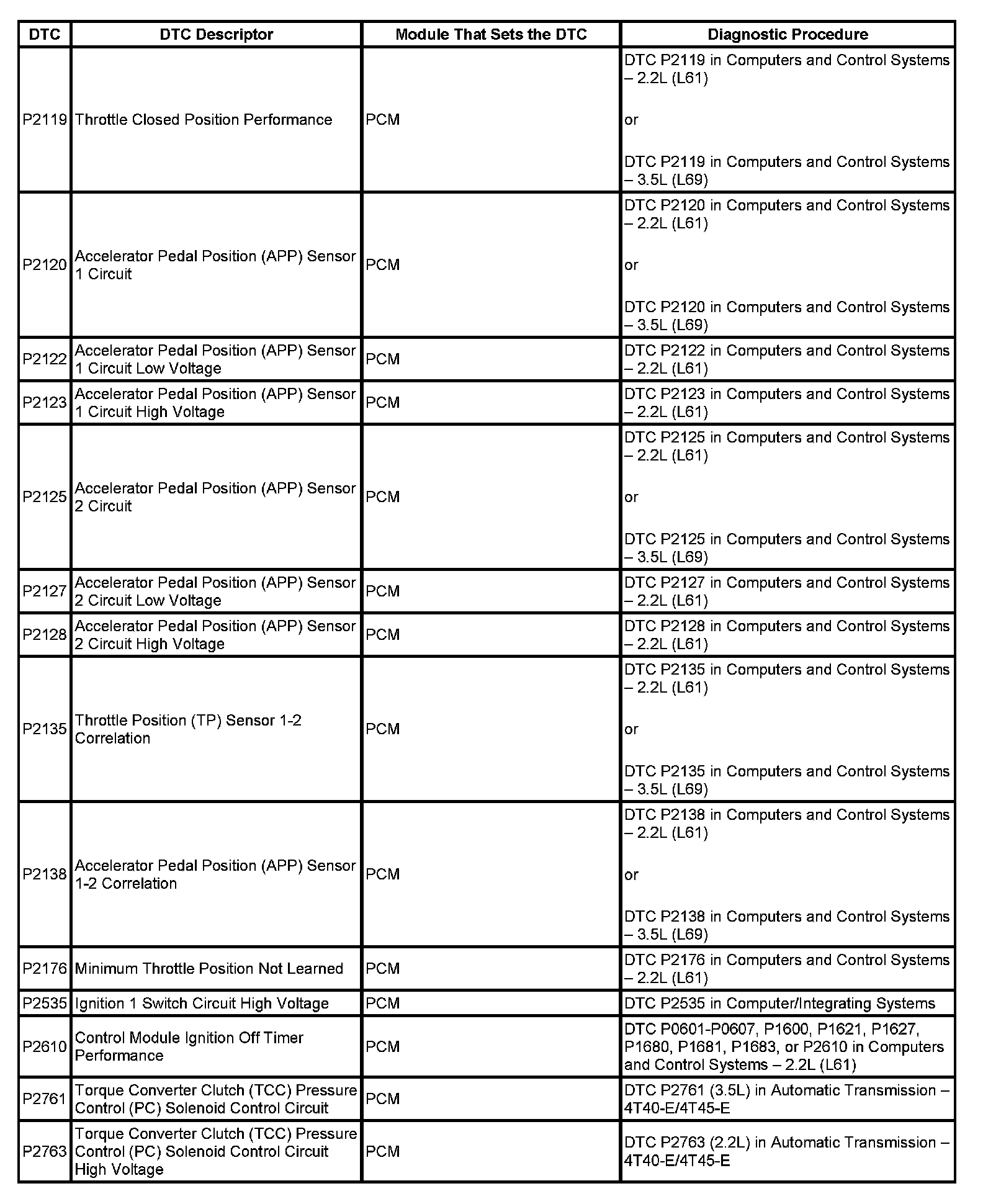 This master DTC list includes all applicable DTCs in alphanumeric order with descriptors.