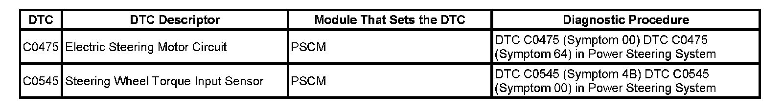 DTC's C0475-C0545: