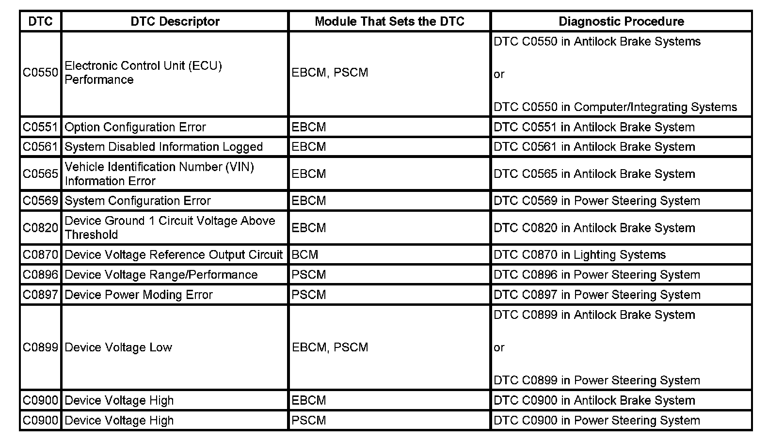 DTC's C0550-C0900: