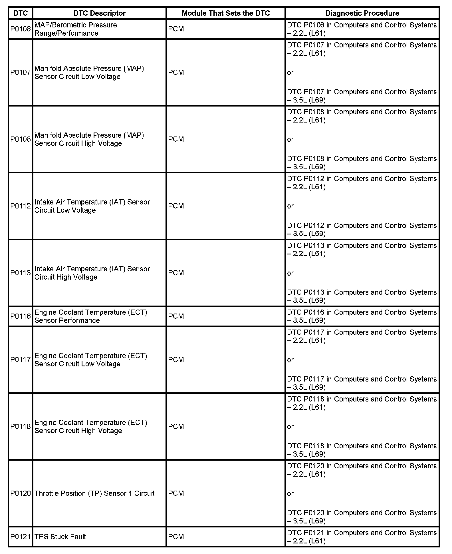 DTC's P0106-P0121: