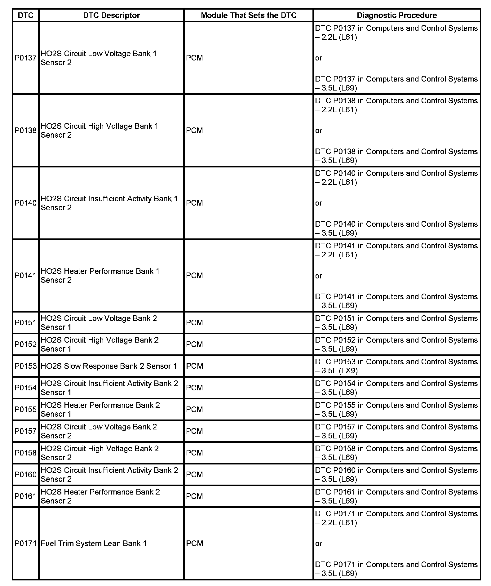 DTC's P0137-P0171:
