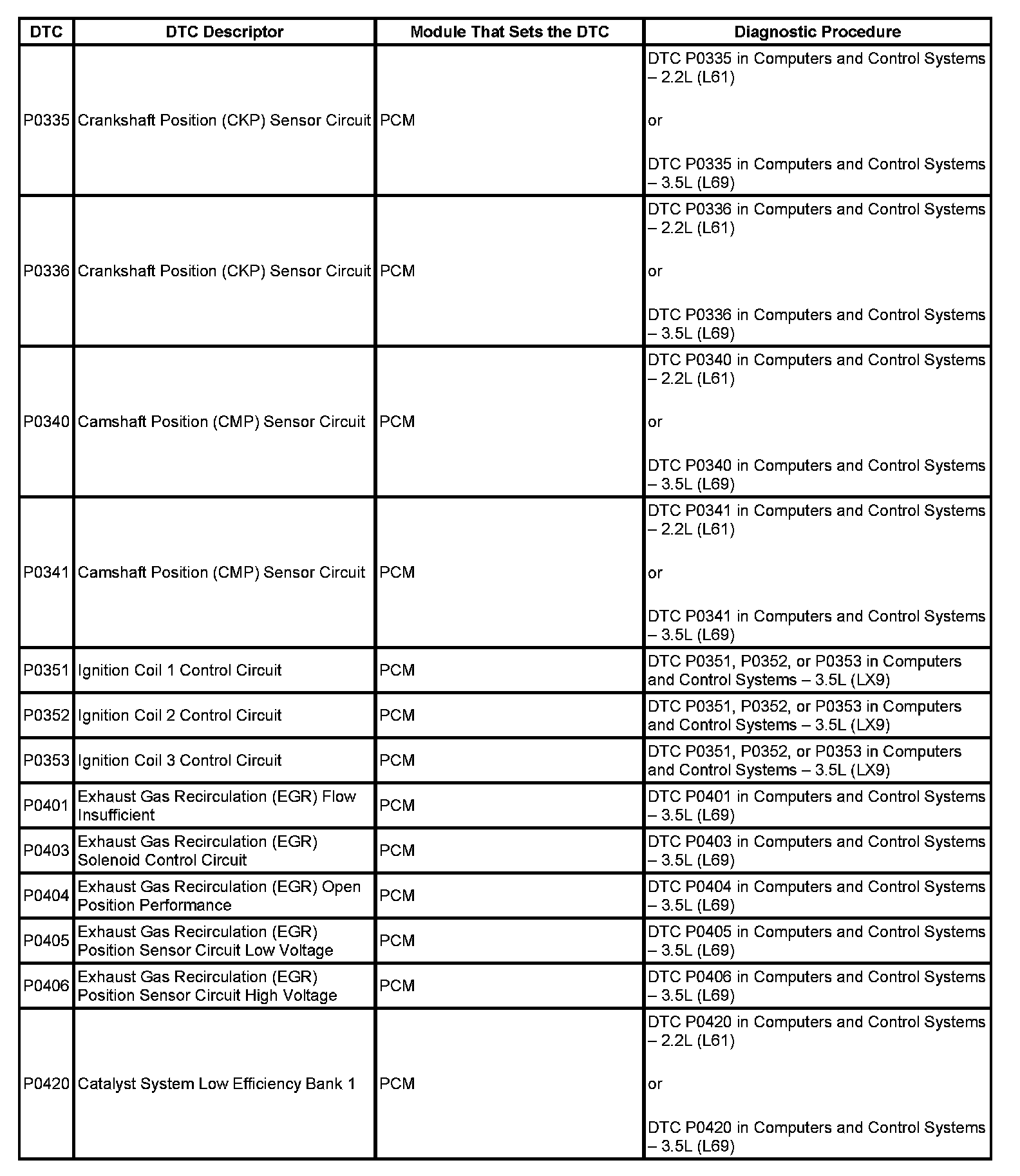 DTC's P0335-P0420: